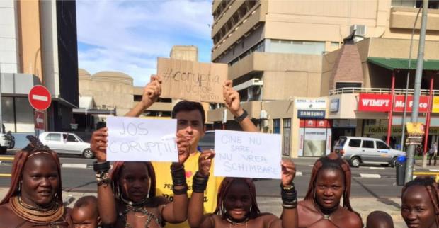 Românii au ieşit cu sutele de mii în stradă în ultimele nouă zile, protestând față de Ordonanţa 13, însă o imagine inedită vine de la cei din Namibia, potrivit Observator.tv.