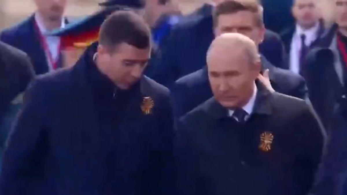 Clipurile cu Putin vorbind cu un bărbat ”misterios” în timpul paradei au început să circule pe rețelele sociale, unii speculând că acest bărbat îl va înlocui într-o zi pe liderul rus.