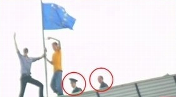 Ion Galaţchi şi Dragoş Musteaţă declară că nu au fost obligaţi să arboreze steagul. Însă, aceştia nu vor sau nu pot să furnizeze numele persoanelor care le-au sugerat să facă acest lucru.