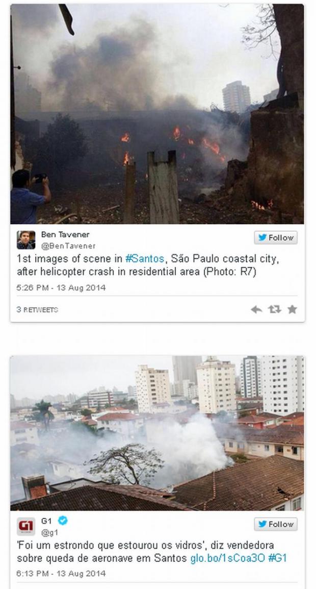 Anterior, presa braziliană anunţase că un elicopter s-a prăbuşit într-o zonă rezidenţială din oraşul Santos.