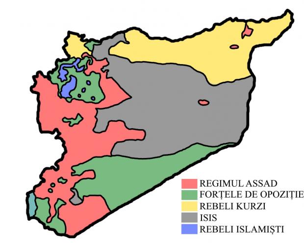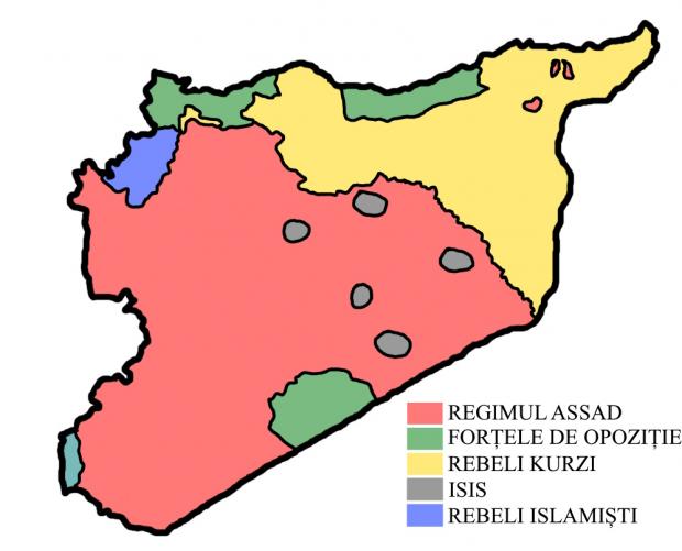 Situația Războiului Civil din Siria în august 2016. Hartă: Adrian Dumitru/Antena 3 CNN