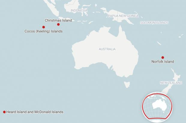 Insulele Heard și McDonald fac parte din teritoriile "externe" ale Australiei, la fel ca și Insulele Cocos (Keeling), Insula Crăciunului și Insula Norfolk.