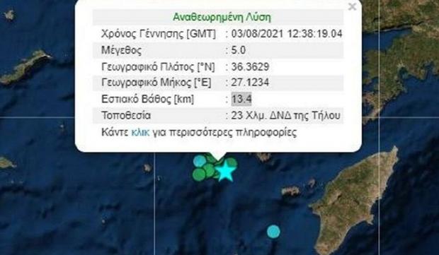 Epicentrul a fost raportat la 27 de kilometri vest de Tilos, la o adâncime de 10 kilometri.