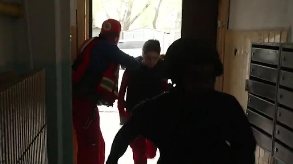 ”Intră!”, a țipat Vladimir. ”Mai repede, mai repede!”. Ne adăpostim sub scări. Alexandra încearcă să găsească persoana rănită, dar nu este semnal. În acel moment au loc noi bombardamente. Ne pregătim de impact”, mai spune ea.