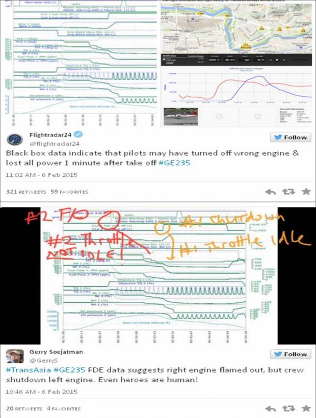 Între timp, serviciul internaţional de monitorizare al zborurilor civile, Flightradar 24.com, susţine că datele din cutiile negre recuperate sugerează că piloţii ar fi oprit motorul greşit, adică pe cel care era încă în funcţiune.