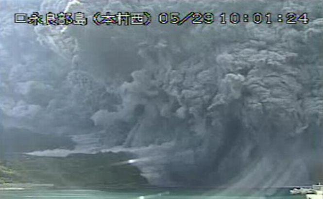 Vulcanul Shindake a erupt în jurul orei 10.00, ora locală, trimiţând în aer un nor negru, înalt de peste 9000 de metri.