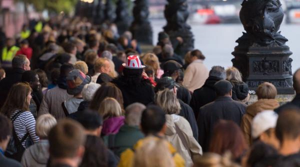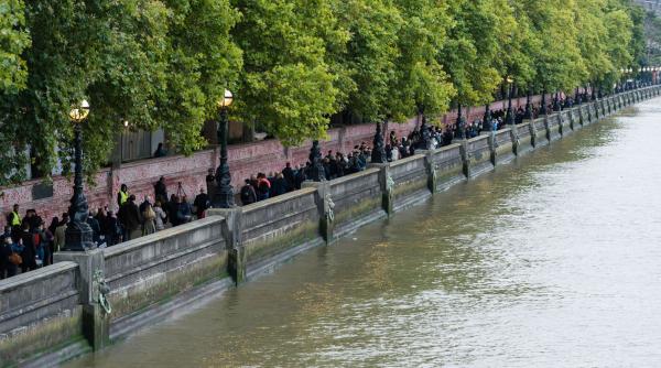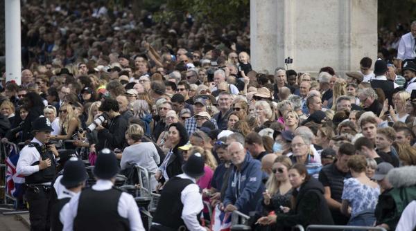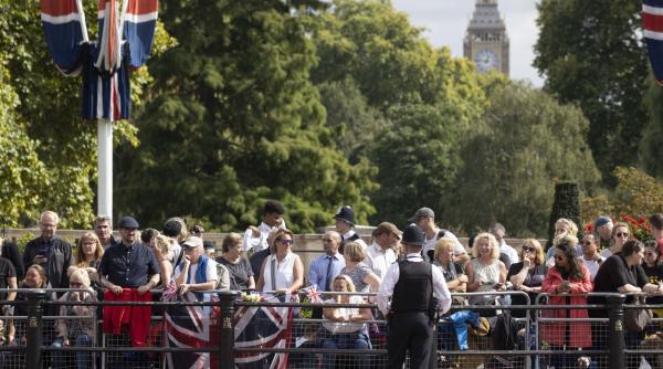 Britanicii din toate colţurile ţării continuă să vină la priveghiul reginei. Coada la intrarea în Westminster Hall depăşeşte 7 km, iar timpul de aşteptare pentru a aduce un ultim omagiu Reginei este de minim 6-7 ore.