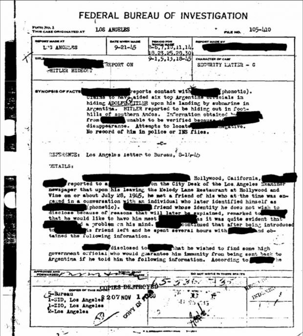 Nimeni nu credea această ipoteză fantezistă până când au fost eliberate documentele FBI. Conform acestora, se pare că cel mai antipatic om a scăpat din Germania şi a dus un trai liniştit într-o localitate rurală din Argentina.