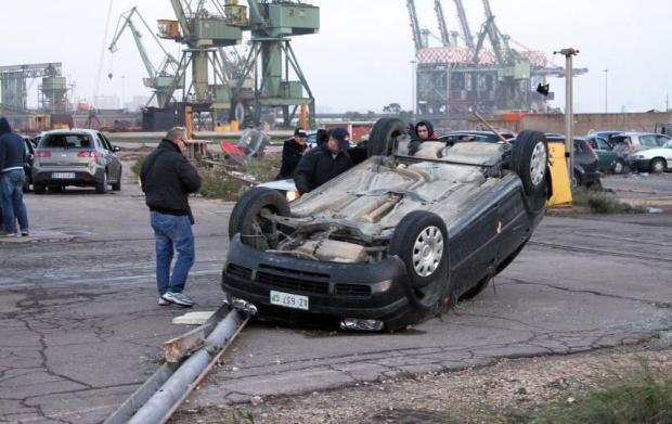 Iniţial o trombă marină, aceasta a devenit o adevărată tornadă când a ajuns pe uscat, unde a produs daune majore la un depozit al fabricii.
