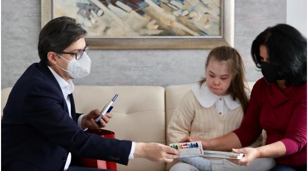 Președintele Macedoniei de Nord, Stevo Pendarovski a vizitat recent familia unei fete cu sindrom Down, care fusese agresată la școală.