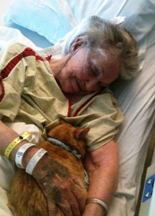 Femeia din imaginea de mai jos a avut o singură dorinţă pe patul de moarte. Să aibă alături de ea, în momentul în care va trece pe lumea cealaltă, cea mai bună prietenă: pisica ei.