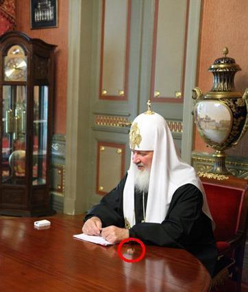 Însă, conştienţi de acest lucru, angajaţii Patriarhiei Rusiei au editat imaginile şi au şters în Photoshop ceasul de la mâna patriarhului. Însă au făcut o greşeală, care i-a dat de gol: reflexia mâinii, la care era pus ceasul, pe masa lustruită.