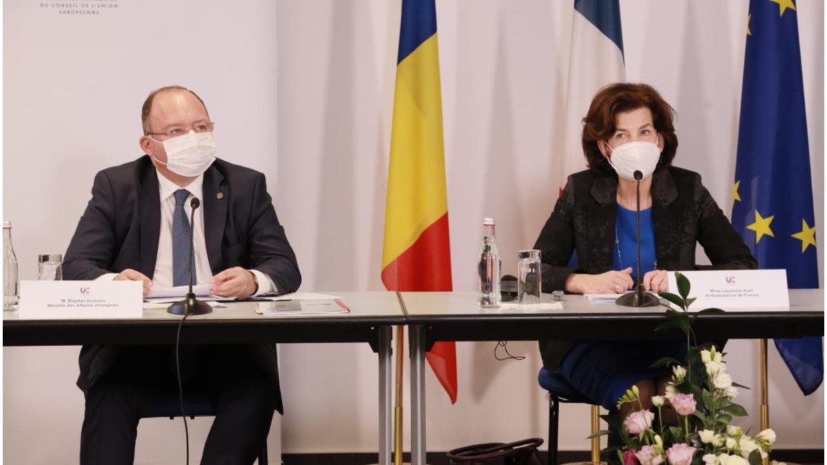 Ambasadoarea Franţei la Bucureşti a fost prezentă la o conferință cu prilejul marcării preluării preşedinţiei Consiliului Uniunii Europene pentru următoarele şase luni de către Franța.
