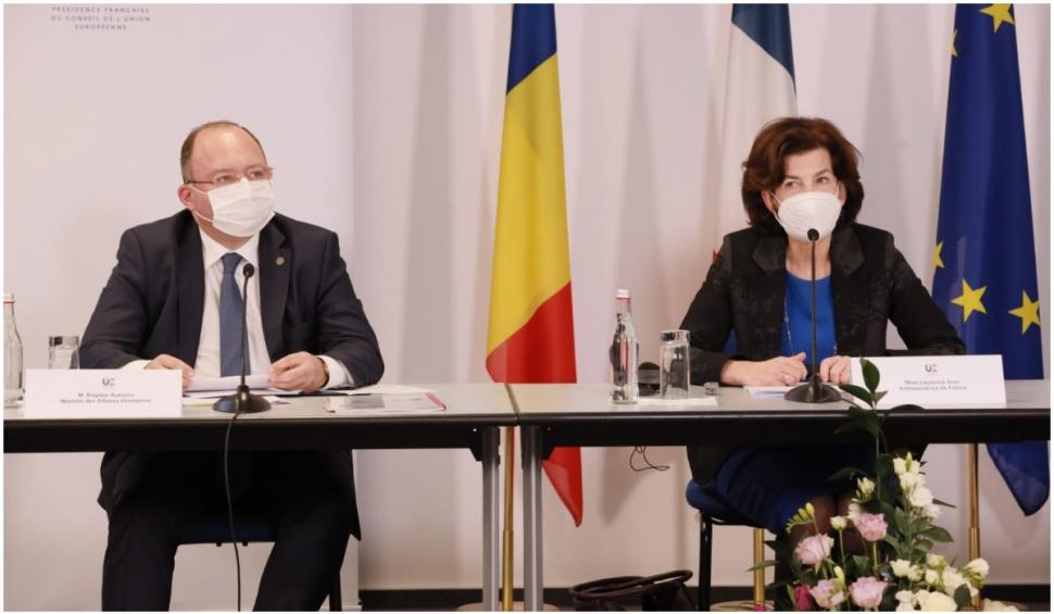 Au mai fost prezenți alături de ea Bogdan Aurescu, ministrul Afacerilor Externe, și Ramona Chiriac, şefa Reprezentanţei Comisiei Europene la Bucureşti.