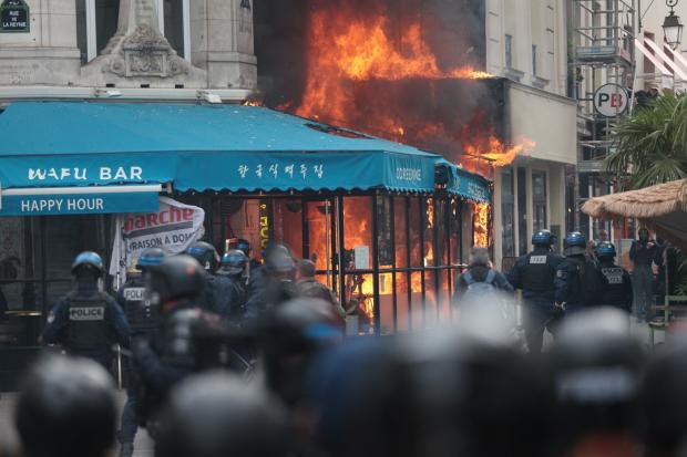 În același timp, un restaurant de la Paris a fost incendiat în timpul protestelor „Blocăm Totul”