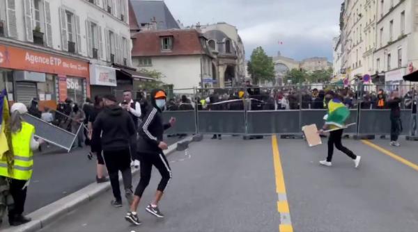 În mai multe rânduri, forțele de ordine au folosit gaze lacrimogene pentru a-i dispersa pe participanții la protest, scrie presa franceză.