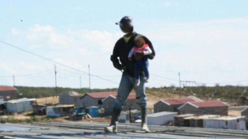 Un bărbat în vârstă de 38 de ani s-a urcat pe acoperişul casei, ţinând într-o mână o fetiţă în vârstă de numai şase luni.