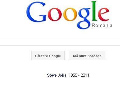 Chiar sub spaţiul destinat căutarii informaţiilor se află scris: Steve Jobs 1955-2011.