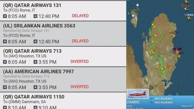 #Qatar is blocked. Only flights out will have to be through Iran, Iraq, Jordan into Mideast. Or Iran, Turkey into EU. pic.twitter.com/KFPwAVYNwg