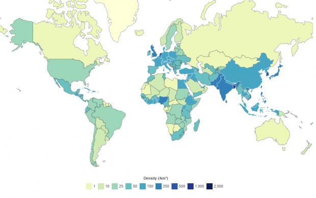 Harta densității populației. FOTO: worldpopulationreview.com