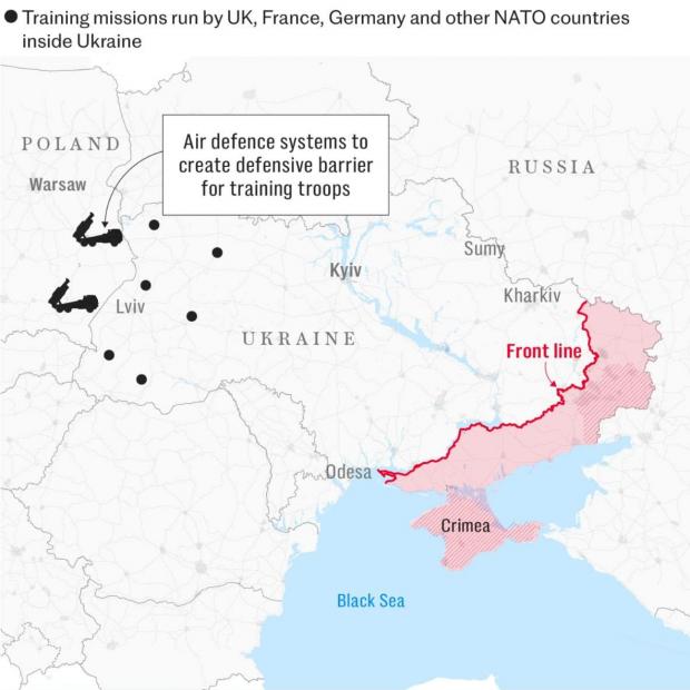 Al treilea scenariu propune crearea unui „scut aerian” deasupra Poloniei, în timp ce se antrenează simultan soldații Forțelor Armate ucrainene în interiorul Ucrainei. În prezent, aceasta este considerată cea mai puțin controversată opțiune și ar putea servi ca un prim pas către desfășurarea forțelor occidentale.