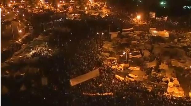 Mii de oameni aşteaptă, în Piaţa Tahrir, anunţul retragerii lui Mubarak / Foto: captură BBC