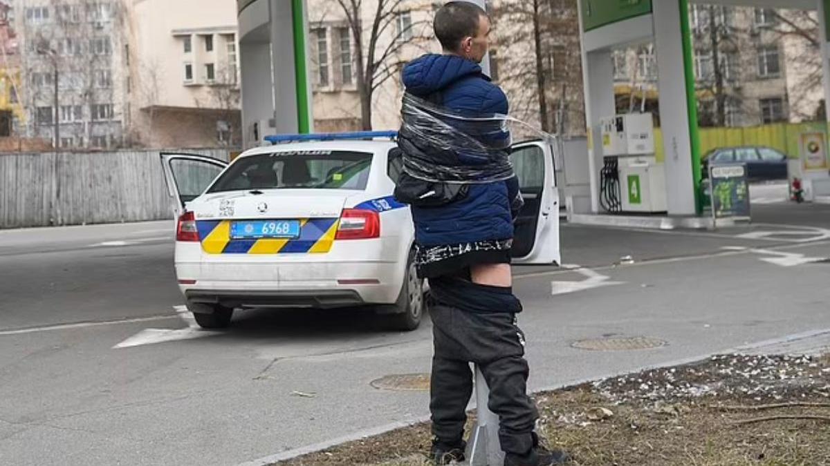 Caught with his pants down: Looter is tied up and humiliated as punishment for trying to steal during Russian attack on Kyiv. Good job, Ukraine! Let's try it in UK. Sorry, we'd get charged for assault and sued for his traumatic feelings. https://t.co/EGBH6rxPcJ