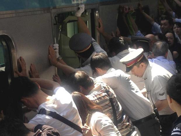 Zeci de oameni s-au luptat minute în şir pentru a scăpa viaţa unei femei ce căzuse pe liniile de la metrou, chiar când trenul se afla în staţie. Pentru a nu fi rănită, şi pentru a reuşi să iasă teafără, înainte ca trenul să se pună în mişcare, zeci de oameni din Tokyo şi-au unit puterile pentru a împinge trenul greu de 29 tone.