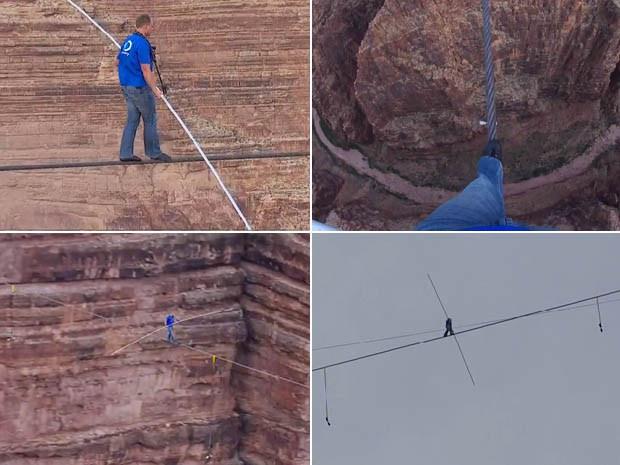 Wallenda nu a folosit nici centură şi nici plasă de siguranţă. Traversarea, între cele două bucaţi de stâncă înalte de 450 de metri, a durat aproape 23 de minute.