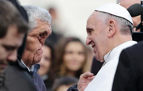 Ieri, Papa Francisc a îmbrăţişat şi i-a rostit câteva cuvinte de apreciere unui bărbat complet desfigurat, care nu avea o jumătate de faţă. Suveranul Pontif nu s-a arătat afectat de chipul bărbatului, ci i-a rostit câteva cuvinte de îmbărbătare, cu zâmbetul pe buze.