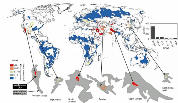 Raportul "Echilibrul global al bazinelor acvifere în funcţie de amprenta pânzei freatice" a identificat mai multe zone aflate în pericol din SUA, Mexic, Europa de Est, Orientul Mijlociu şi China, unde resursele de apă şi ecosistemele care depind de nivelul pânzei freatice sunt în pericol din cauză că volumul folosit depăşeşete cu mult ritmul în care ploaia realimentează bazinele.