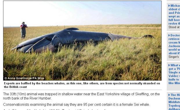 Puiul de balenă s-a rătăcit probabil de familia sa şi a ajuns la malul coastei britanice, apoi, dezorientat fiind, a "greşit" drumul de întoarcere: în loc să meargă înapoi în apă, mamiferul s-a rostogolit până a ajuns la aproape un kilometru de ţărm.