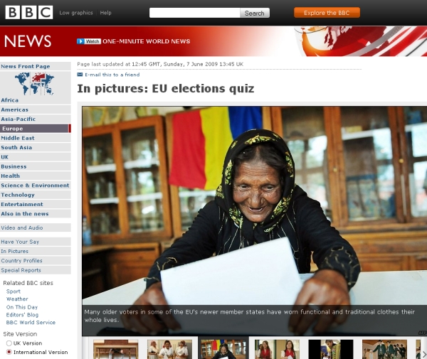 Cea mai reprezentativă poză pentru România, în concepţia celor de la BBC News, prezintă o bătrână de etnie romă. Femeia a fost fotografiată, în timp ce-şi exercita dreptul de vot şi introducea buletinul în urnă.