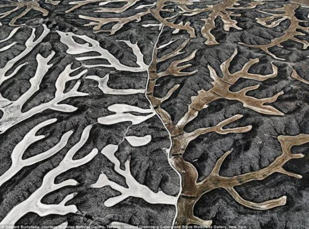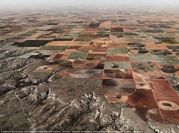 Aici se poate vedea o regiune din Spania, puternic afectată de secetă. Imaginea, surprinsă din satelit, a fost prelucrată de fotograful canadian pentru a fi mai vizibile schimbările pe care omul le-a făcut asupra mediului înconjurător.