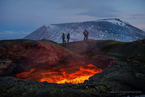 Lava extrem de fierbinte a vulcanului Tolbachik era la câţiva metri de picioarele lor, iar temperatura era extrem de ridicată.