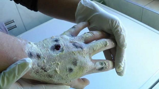 Încet, dar sigur, rănile provocate de acest drog devorează pielea, ţesuturile şi muschii celor infectaţi. Tocmai de aceea a fost numit drogul Krokodil. Găurile făcute sunt aşa de adânci încât dezvăluie osul, adeseori. Ba chiar, o femeie şi-a pierdut aproape complet picioarele, ce arată de parcă ar fi ciuruite de gloanţe.