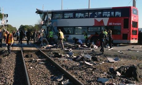 Tragedia a avut loc cu puţin timp înainte de ora nouă dimineaţa, când, la o trecere de cale ferată, un autobuz supraetajat a intrat în plin într-un tren de pasageri care venea dinspre Montreal şi avea destinaţia Toronto.