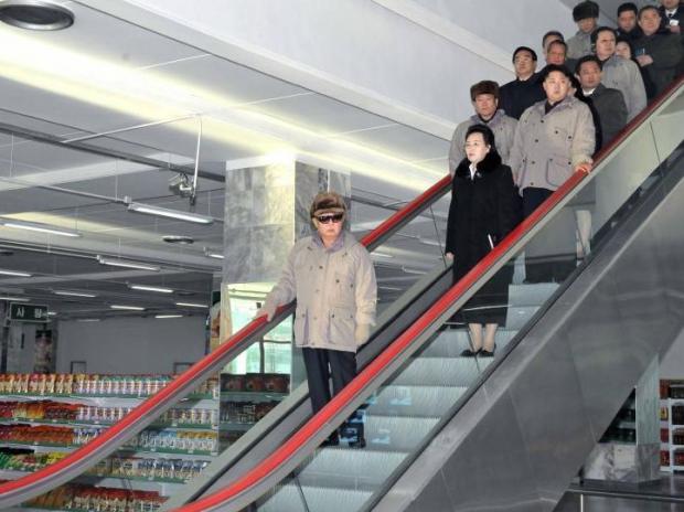 Kim Jong-Il a fost surprins pe scările rulante din primul supermarket nord-coreean.