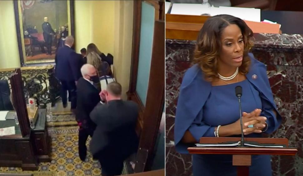 Înregistrări suplimentare, de la camerele corporale ale polițiștilor din Capitoliu, au permis corelarea momentelor în care parlamentarii erau evacuați de agenții de la serviciile secrete, cu acțiunile mulțimii furioase.