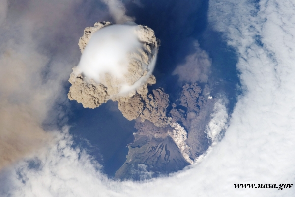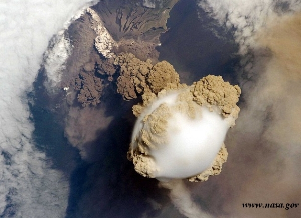 Vulcanul Sarychev este unul dintre cei mai activi din arhipelagul rusesc Kuril. Ultima erupţie a acestuia a avut loc în 1989.
