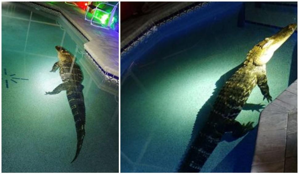 Imagini inedite. Un aligator de 550 de kilograme prins când făcea baie în piscina unei familii din Florida: "A sfâşiat paravanul pentru a ajunge la apa rece"