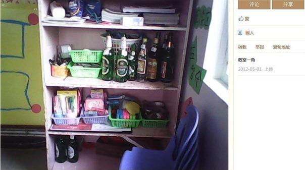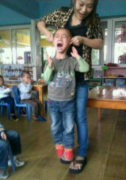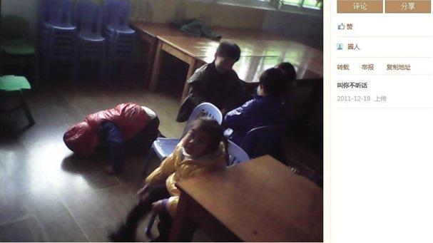 Într-una din poze se poate vedea cum Yan ridică de urechi un copil, până când acesta nu mai atinge solul cu picioarele, iar în dulapul în care micuţii îşi ţineau jucăriile se pot vedea sticle de bere, semn că educatoarea era "însetată" în timpul programului.