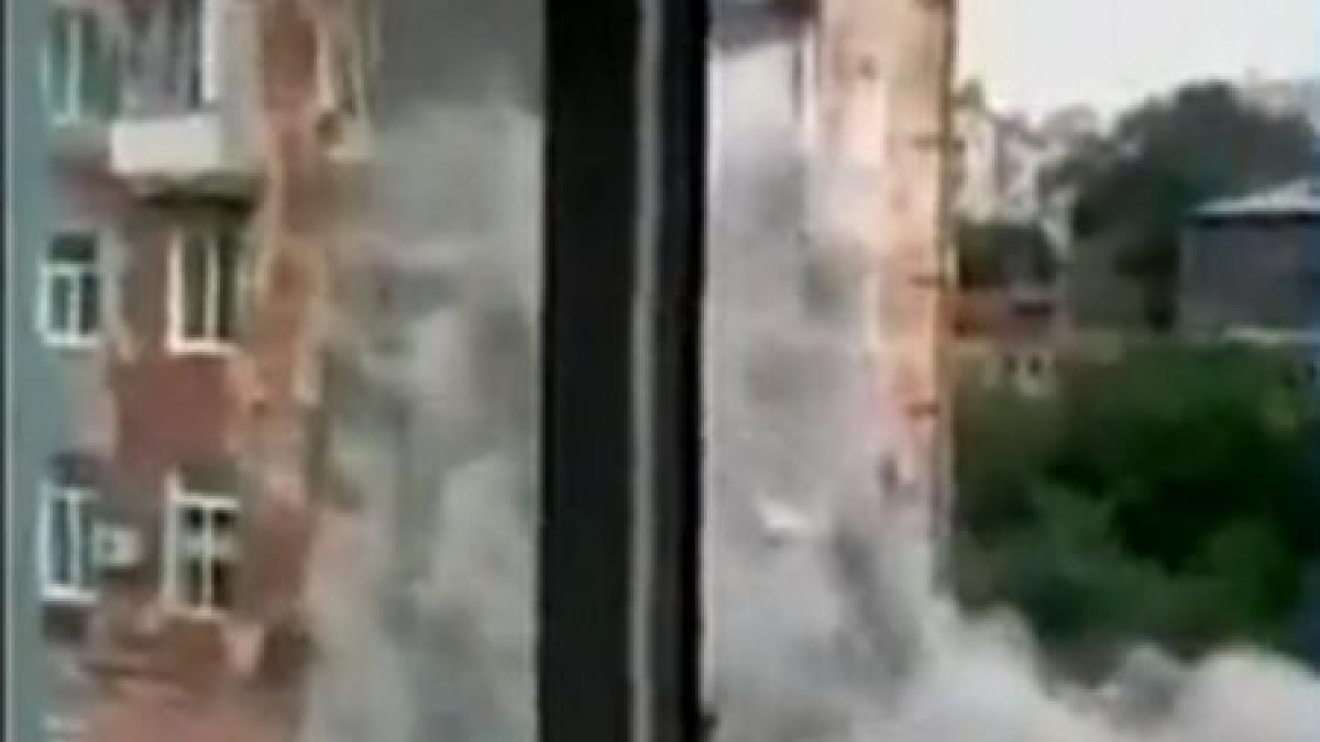 Imagini incredibile surprinse în Rusia. O clădire veche, dar locuită s-a prăbuşit sub ochii vecinilor.Imaginile au fost filmate din blocul apropiat, după ce o vecină a început să audă zgomote ciudate de mai multe minute.