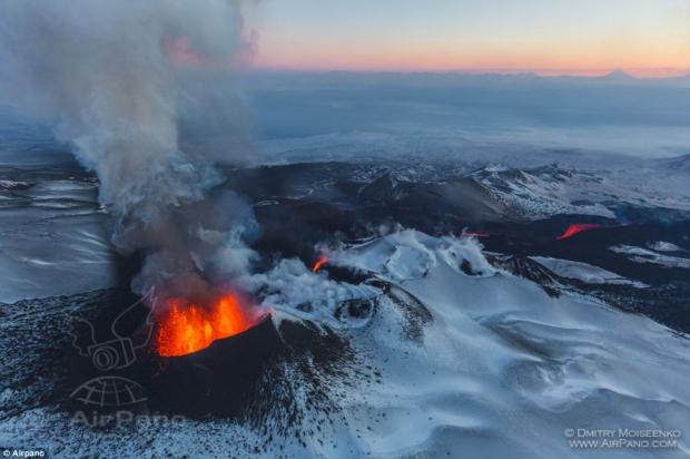 În timp ce vulcanul arunca în aer cenuşă şi lavă fiebinte, "temerarii" filmau de zor imaginile care aveau să fie apreciate de mii de oameni. Plosky Tolbachik este unul din cei patru vulcani care se află la o distanţă de 200 de kilometri unul de celălalt şi care au fost activi în mod simultan încă din luna noiembrie a anului trecut.