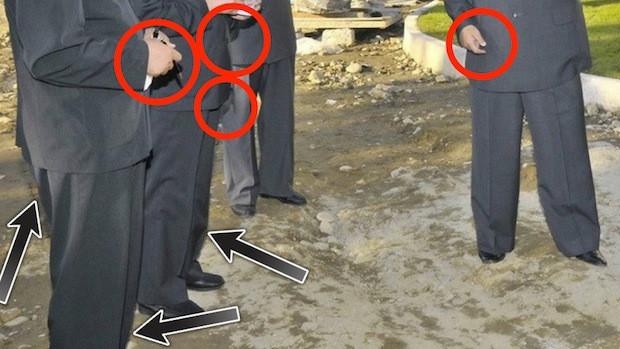 "Umbrele care cad pe trupurile bărbaţilor care îl însoţesc pe Kim Jong-Un nu s-ar fi văzut astfel dacă pozele ar fi fost făcute în aer liber, se vede clar că pozele sunt făcute într-un studio şi prelucrate apoi în Photoshop", spun utilizatorii de pe Reddit, care au studiat cu atenţie fotografiile.