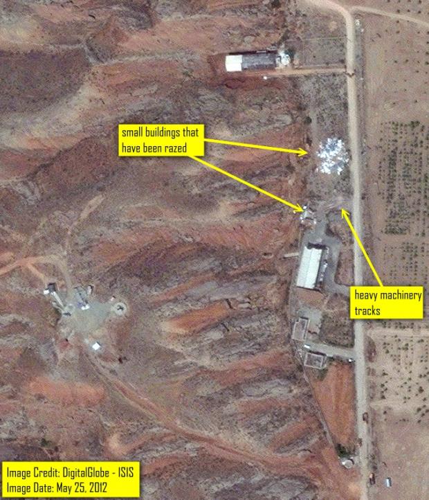 Institutul pentru Ştiinţă şi Securitate Internaţională (ISIS) a postat miercuri imagini din satelit, realizate la 25 mai, care par să arate distrugerea a două clădiri la Parchin şi folosirea unor utilaje grele pentru a muta pământul şi echipamentul.