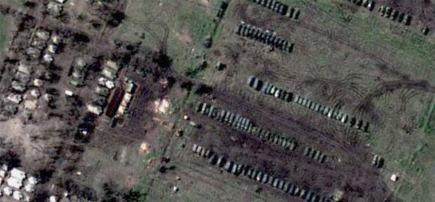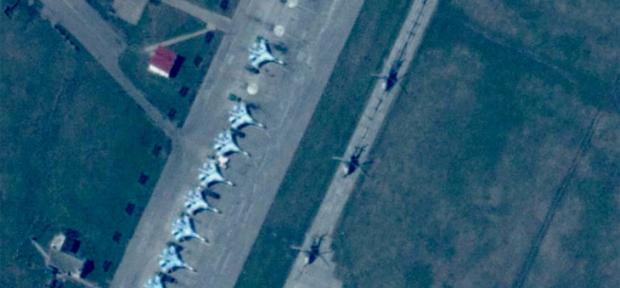 În una dintre fotografii apar 21 de elicoptere militare parcate pe un aerodrom din localitatea rusă Belgorod, situată la 40 de kilometri de frontiera Ucrainei. În apropierea elicopterelor sunt 40 de tancuri şi peste 100 de vehicule de infanterie.