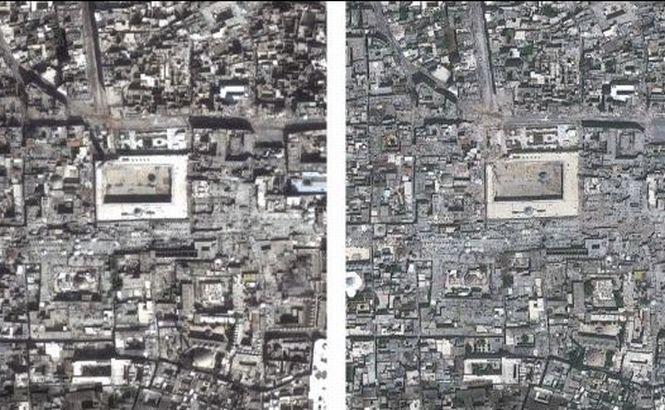 Fotografiile realizate prin satelit arată cartiere întregi făcute una cu pământul. Iar în timp ce oraşele dispar treptat din cauza bombardamentelor, taberele de refugiaţi cresc în continuu.