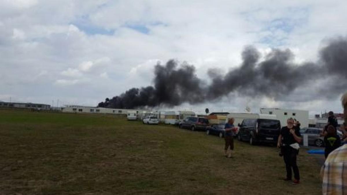 Containerele au fost cuprinse de flăcări, iar fumul este vizibil de la o distanță de câțiva kilometri.