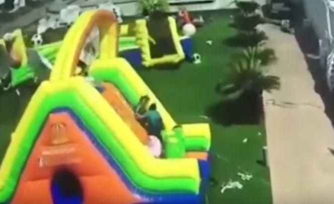 Un castel gonflabil în care se juca o fetiță de șapte ani a fost desprins de la sol de vântul puternic și târât câțiva metri, scrie The Sun.